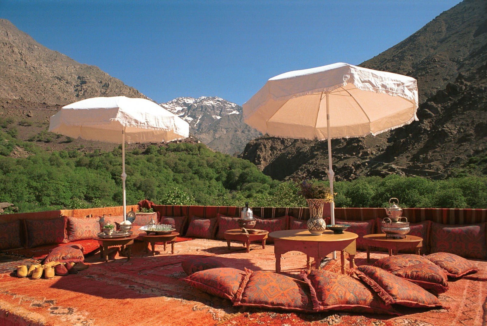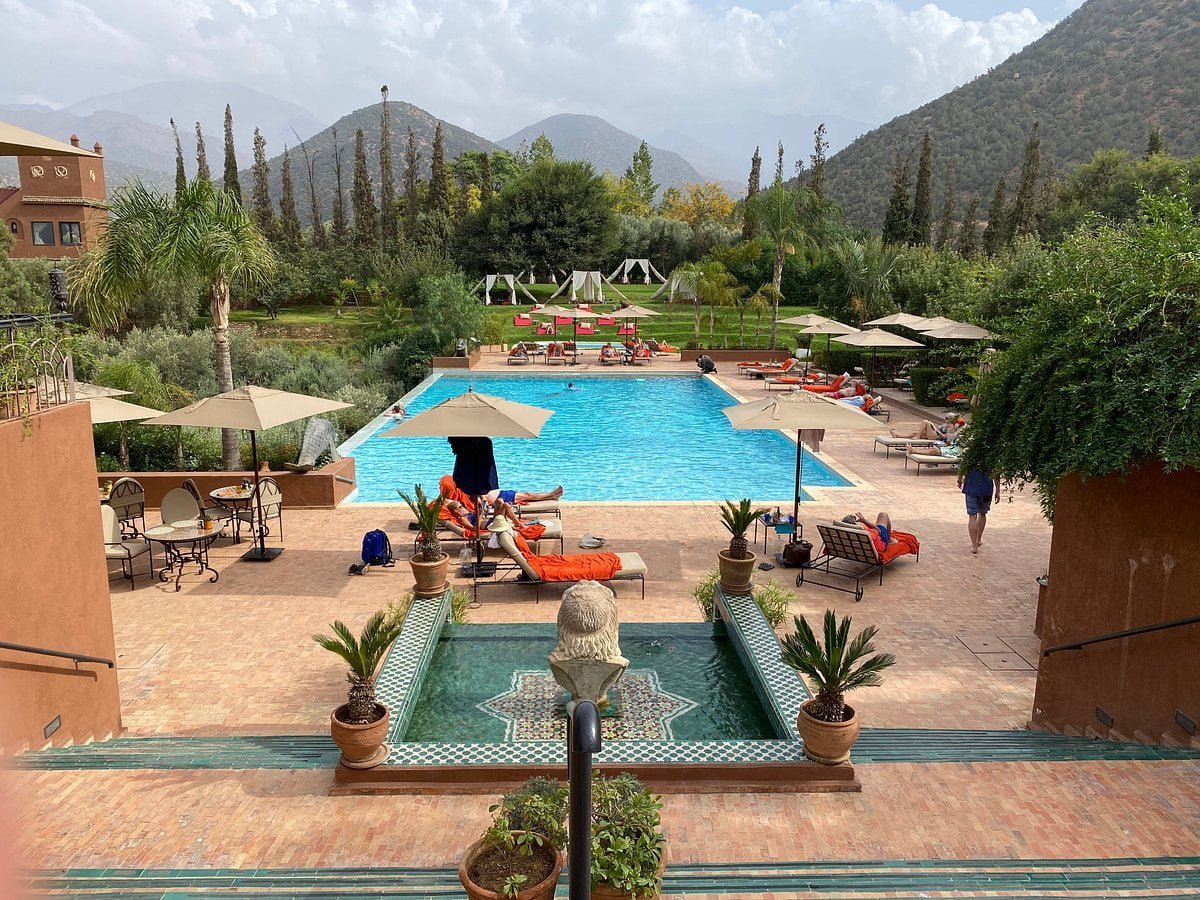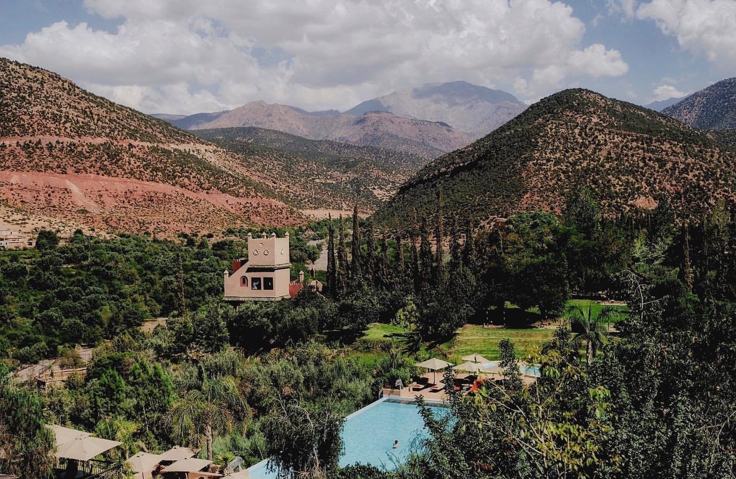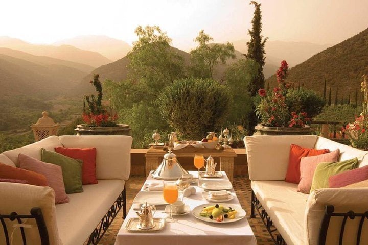 Take a day trip to the tranquil Atlas Mountains, which offer a taste of opulence at Sir Richard Branson's Kasbah Tamadot, to escape the bustling streets of Marrakech. Once home to a wealthy Italian antiquarian, this Kasbah is one of Virgin Limited's most exclusive properties globally. It is opulent, having been discovered by Sir Richard Branson while flying over the Atlas Mountains in a balloon.