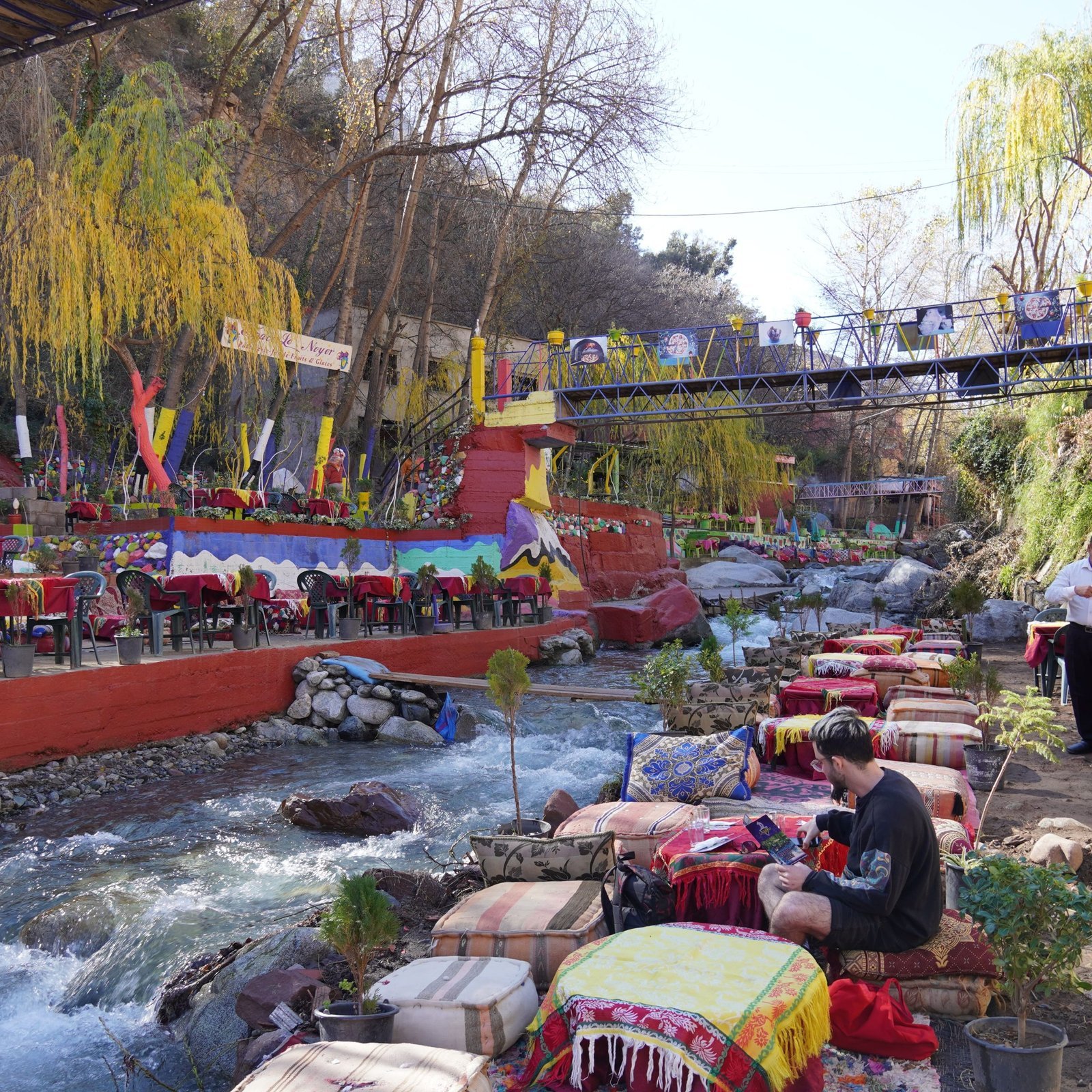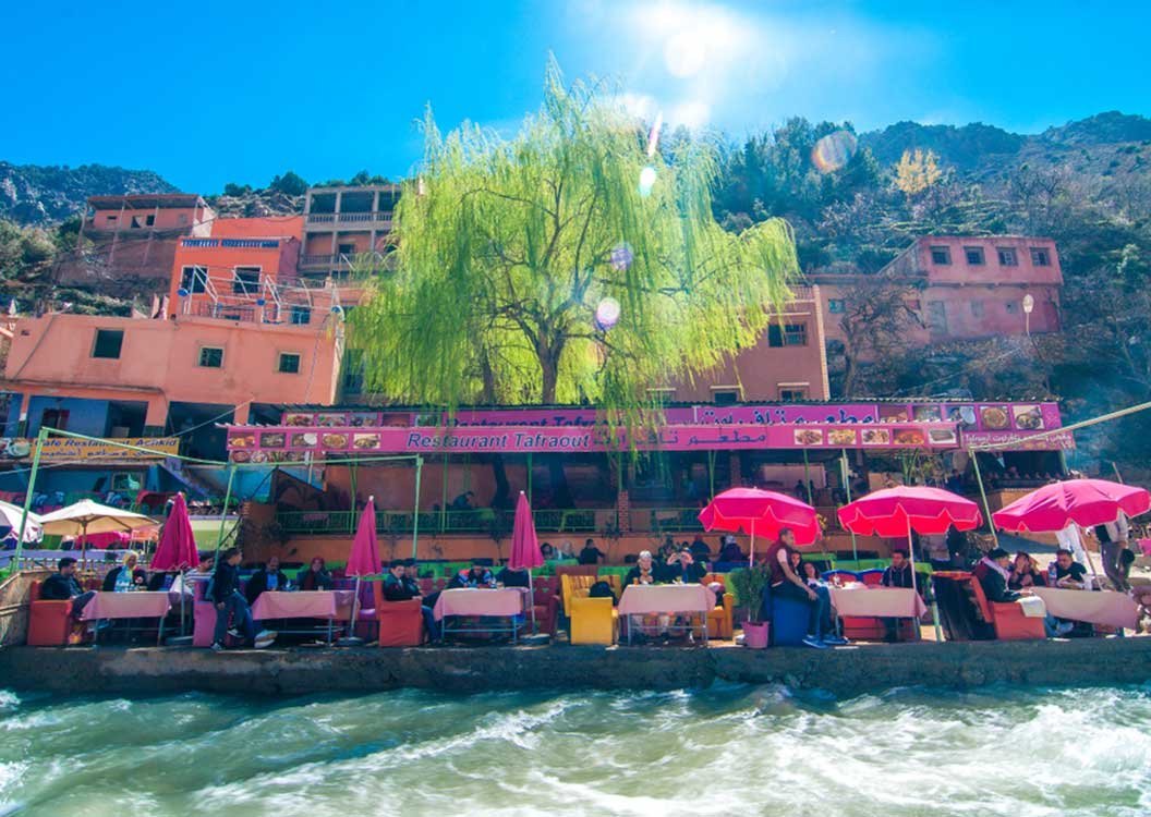 When you arrive, either hire knowledgeable local hikers to take you to a number of breathtaking waterfalls, or simply relax at riverbank cafés and take in the tranquil sound of the stream against the backdrop of the High Atlas Mountains. Numerous cafés provide light fare at your own pace, catering to a range of budgets.
